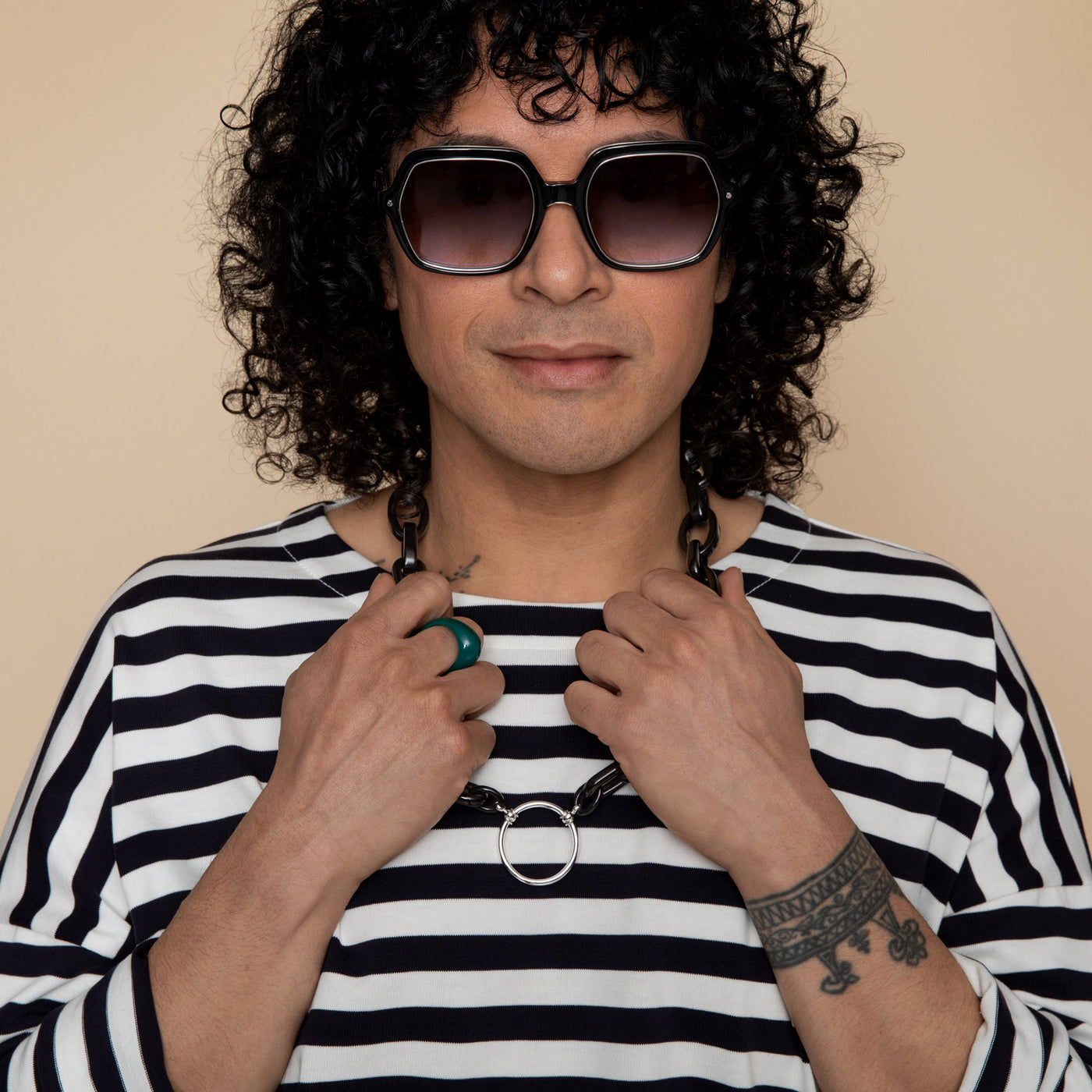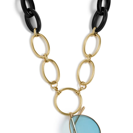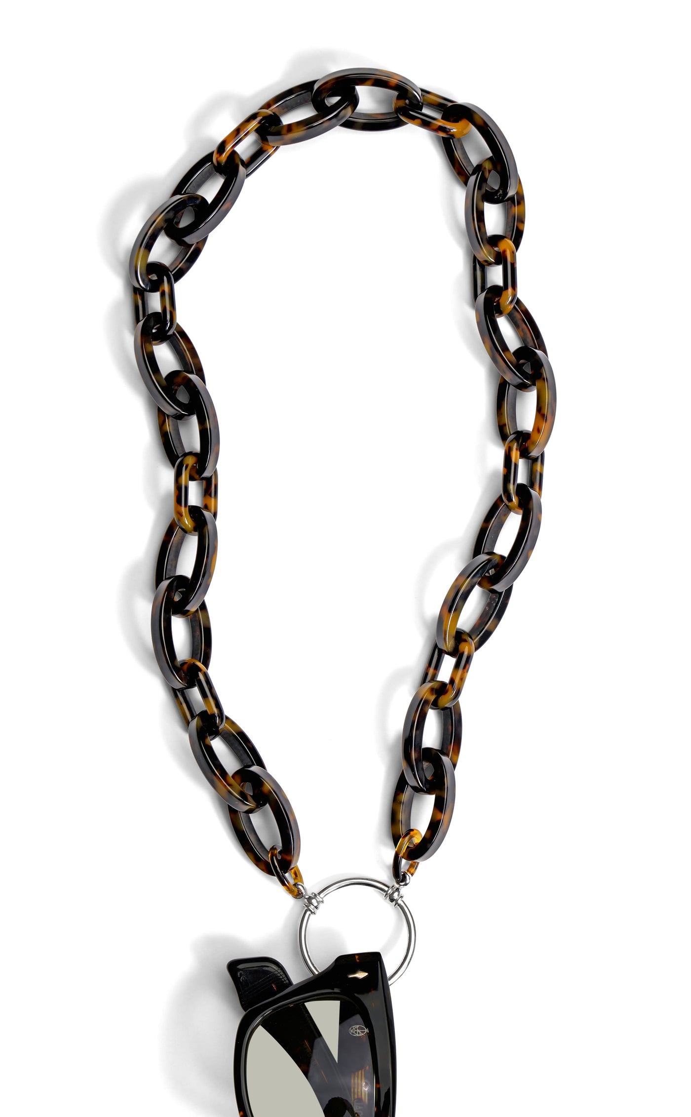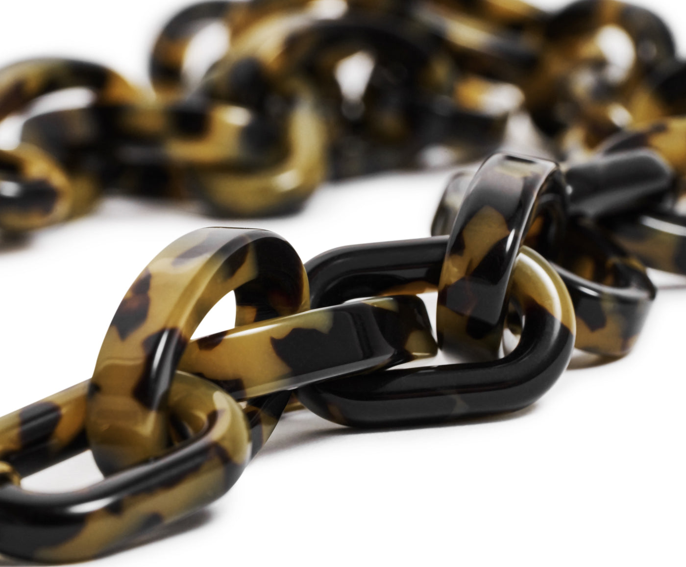 - Features oversized acetate links, a plant-based material, that’s lighter, glossier, and more durable than traditional plastics