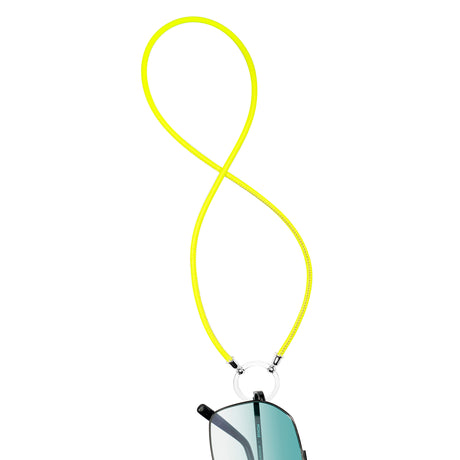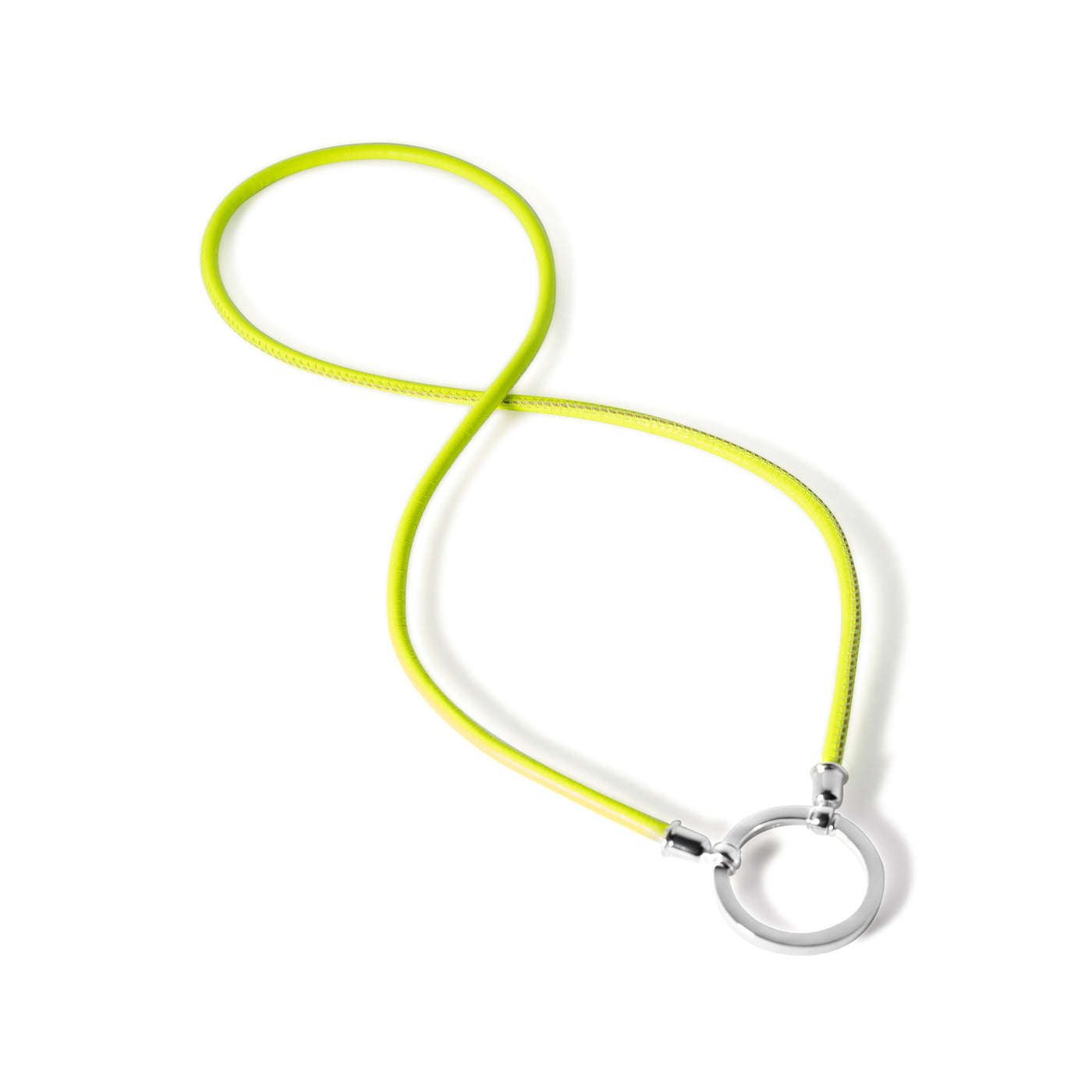 A LA LOOP necklace lives within a unique category of accessory that merges the elegant clean lines of a necklace with a simple silver circle crafted to hold glasses. This piece is hand made from braided Italian calf skin leather, which comes from a mill outside of Venice who’s been producing fine leather accessories since the 1960s. Named after the lead character Katharine Clifton in the film, The English Patient, The Clifton is a classic. In the spirit of pop and surprise, we designed this neon yellow necklace to stand out from the crowd.