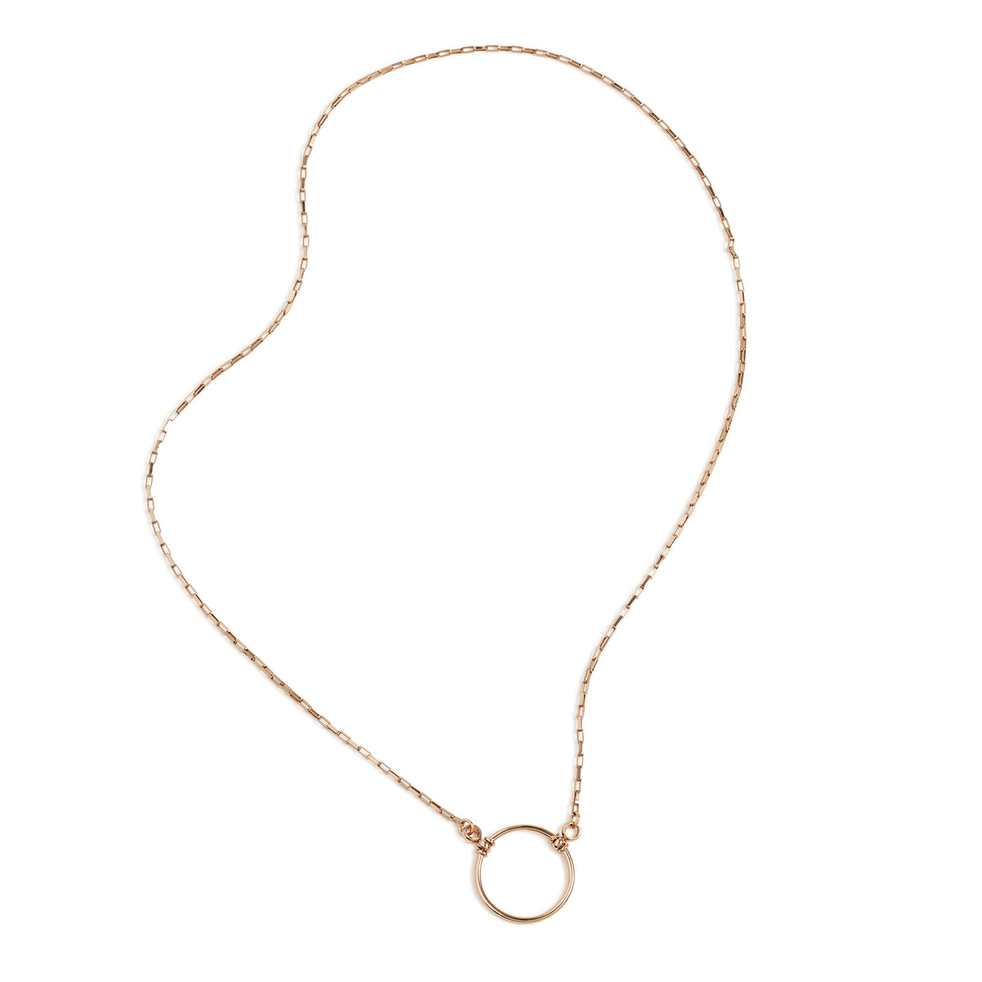 A LA LOOP necklace lives within a unique category of accessory that merges the elegant clean lines of a necklace with a simple metal circle crafted to hold glasses. The Petite Chains are some of our most versatile and enduring Jewelry chains, designed for simple everyday elegance.