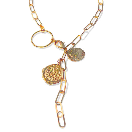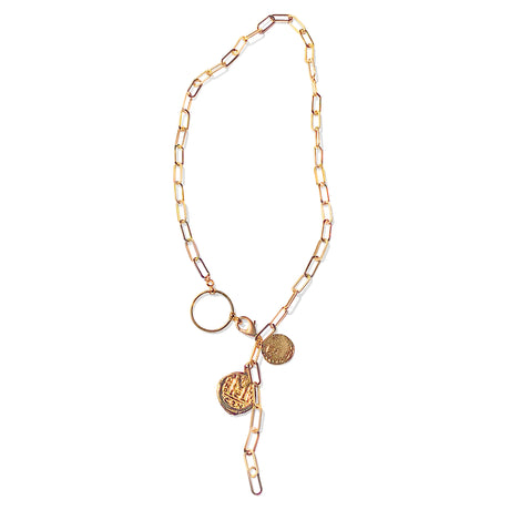 - Chain is a polished 14k gold fill; loop and coin charms are 24k gold plated