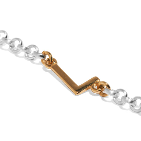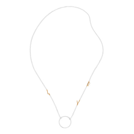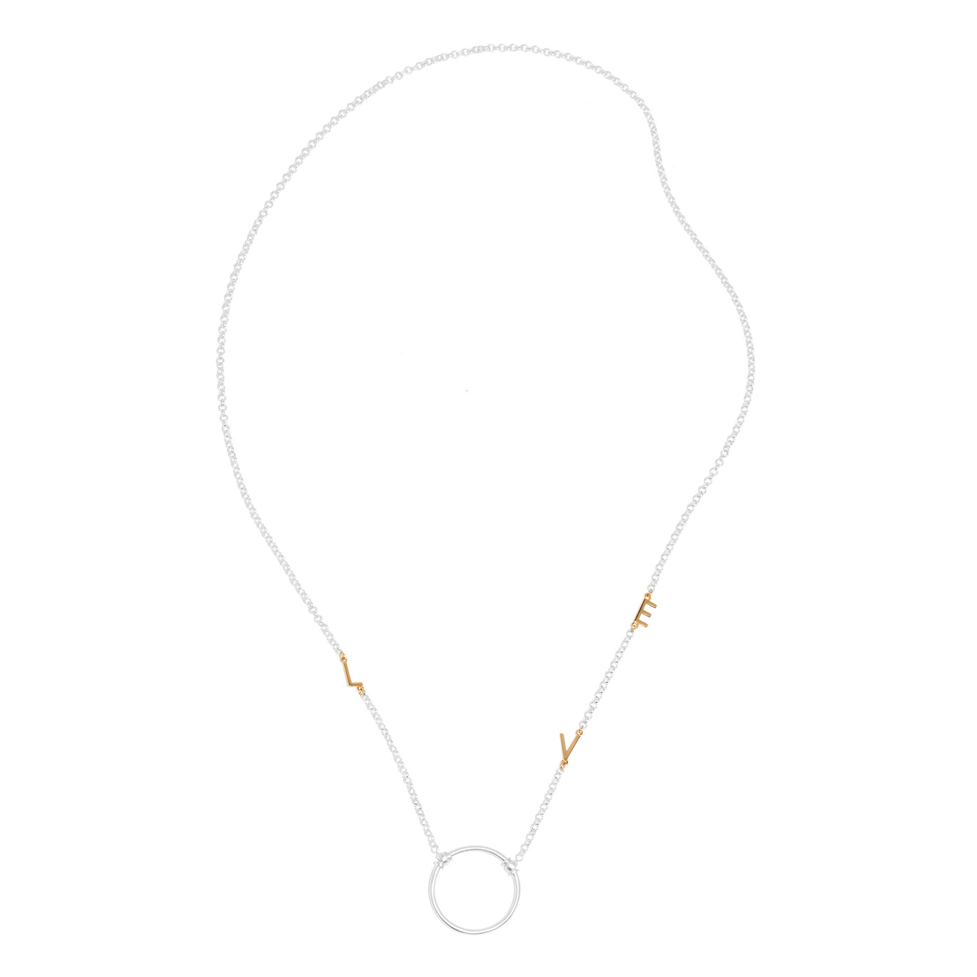 - Loop and rolo chain have a brushed silver plating, with contrasting letters plated in polished 24k gold